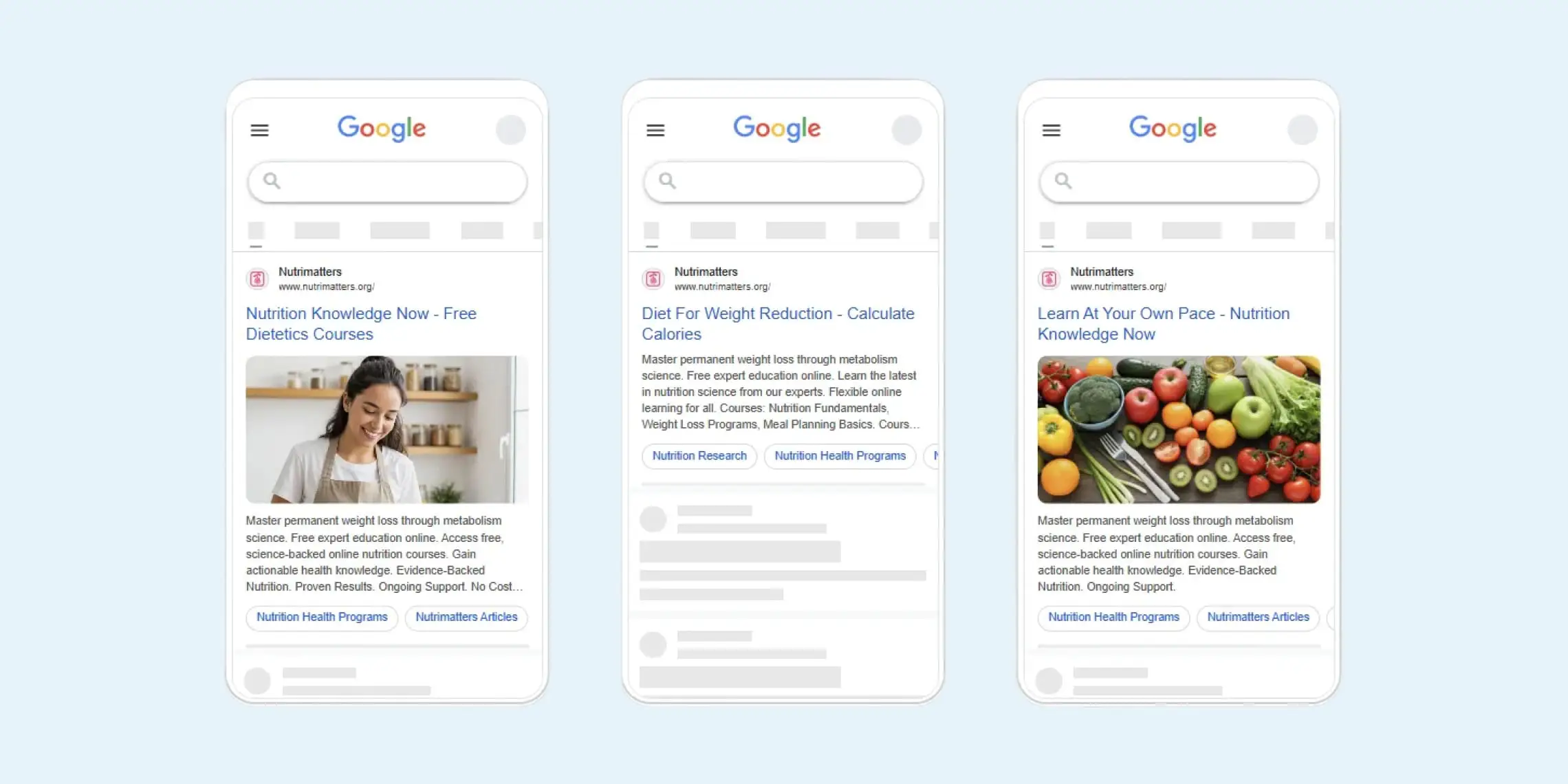 We successfully maintained and exceeded Google's strict performance requirements while driving meaningful engagement for Nutrimatters' educational mission.